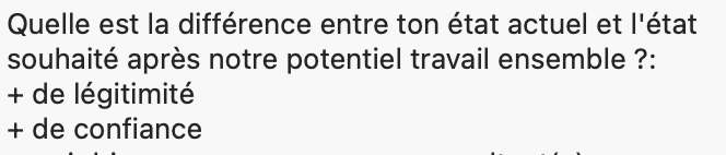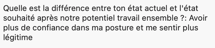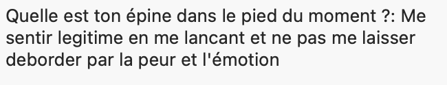 ☝️ Mélanie, elle débarque en appel découverte chez bibi pour la formation posture et elle me met dans le petit formulaire pré-appel qu’elle ne se sent pas légitime